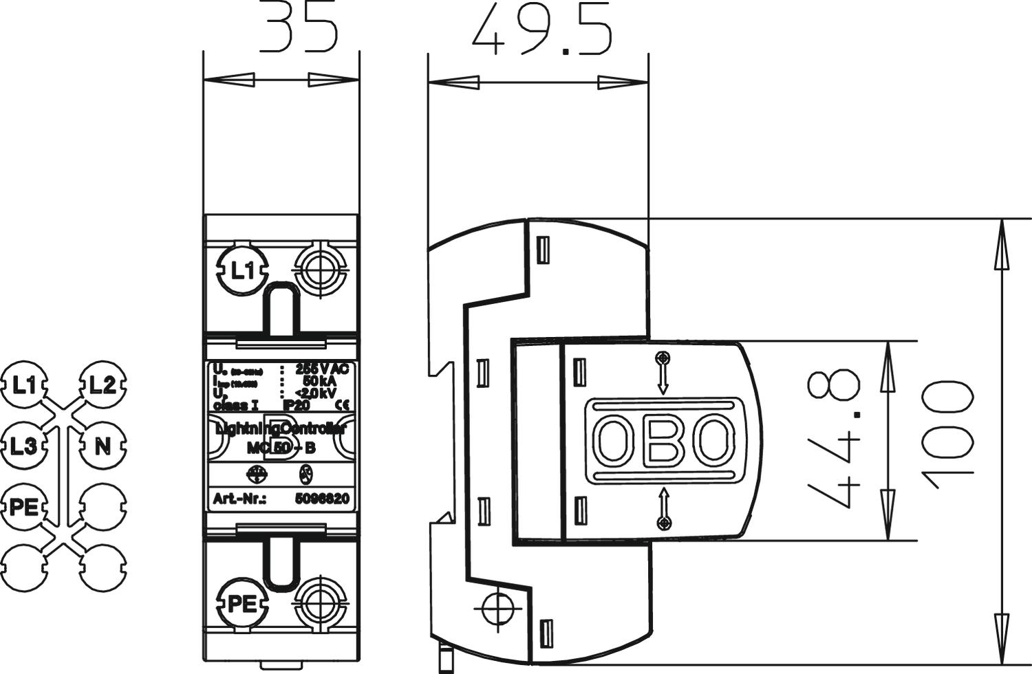 سرج ارستر تایپ 1 اوبو MC 50-B VDE-5096847 تک فاز، بدون کنتاکت آلارم