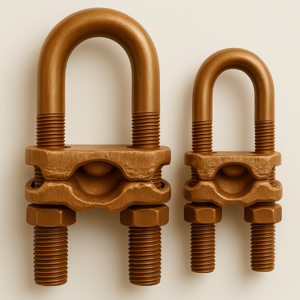کلمپ بالای نگهدارنده از جنس فلز ضدزنگ، گالوانیزه، برنجی و یا مسی بوده و به‌گونه‌ای طراحی شده که علاوه بر سیم‌های گرد تا قطر 10 میلی‌متر (معادل سایز 70)، تسمه‌های مسی یا آلومینیومی تا عرض 25 میلی‌متر و ضخامت 3 میلی‌متر را نیز به‌صورت ایمن مهار می‌کند.