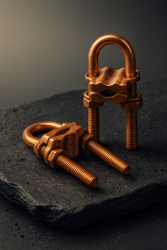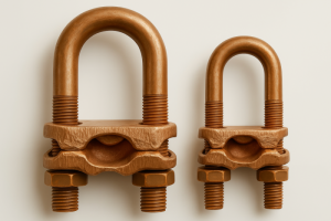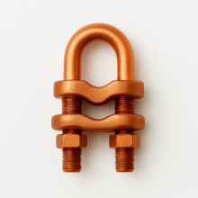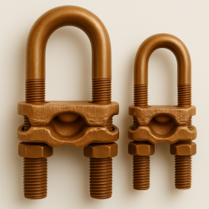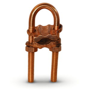 یوبولت برنجی از جنس چدن با روکش مس که برای اتصال سیم مسی به الکترودهای سیستم ارتینگ (میله ارت و یا آرموتور) به کار میرود .